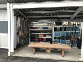 徹底的にキレイに整えられた、掃除用具置き場。地域清掃は、地域に迷惑をかけていることへの「つぐない」